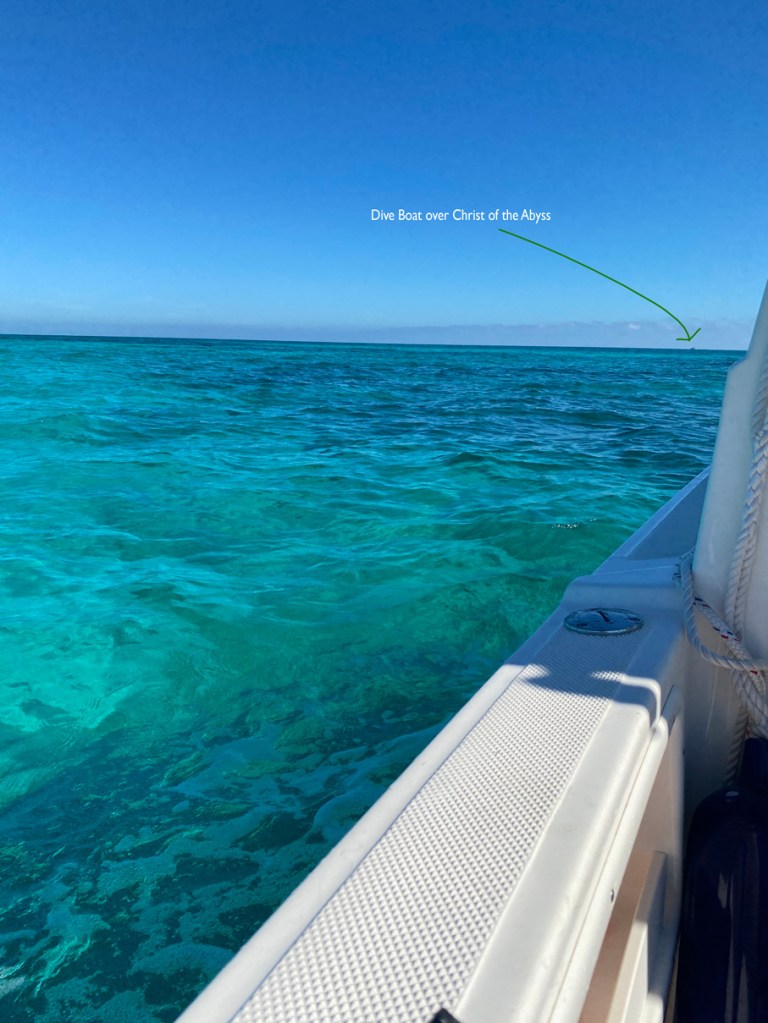 It has been almost 20 years since I last went diving or snorkeling. Despite this, we took our boat out to a dive site in the Atlantic (versus diving with a group) to see a statue underwater — my comfort zone was greatly breached.