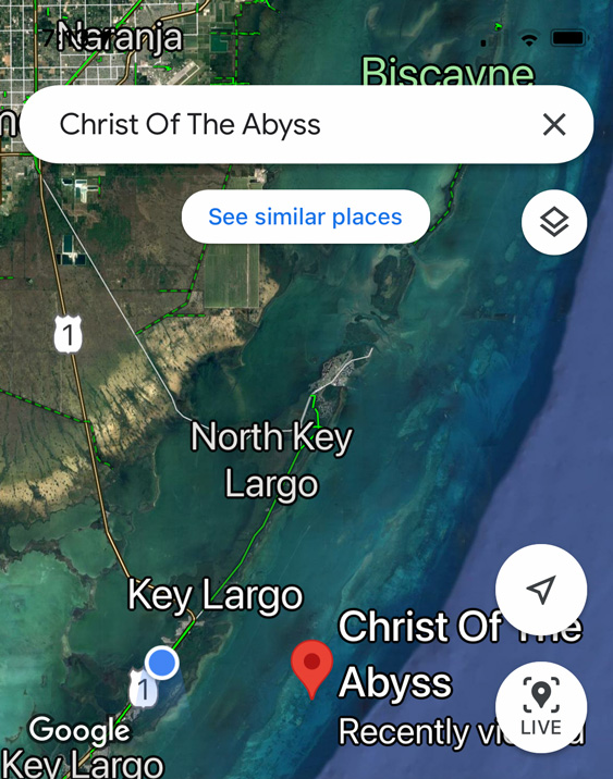 Those who do not dive or snorkel and never want to can still see a statue of the Christ of the Abyss when visiting Key Largo. St. Justin Martyr Catholic Church in Key Largo has a bronze replica located in front of the main sanctuary at mile marker 105.5 on US 1. The church commissioned Ido Demetz in 1991 to make a bronze replica.